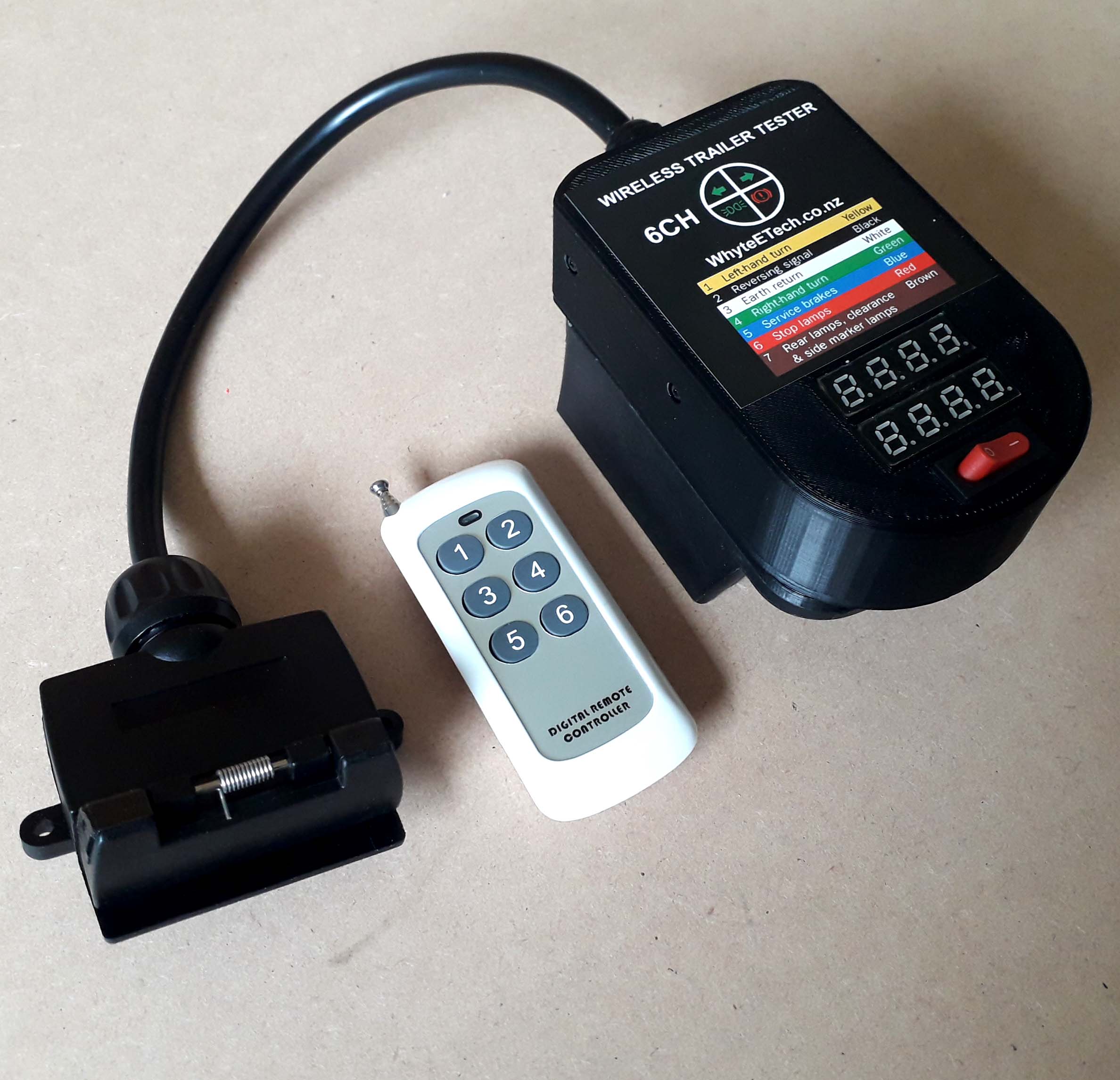 Latch the Trailer Tester onto your battery, connect to the trailer or vehicle under test and walk around with the remote as you test each light.